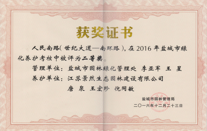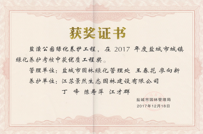 養護榮譽(yù)證書(shū)