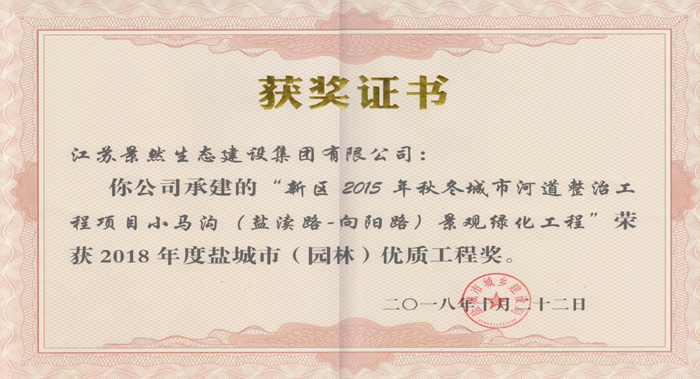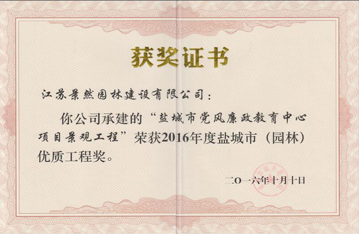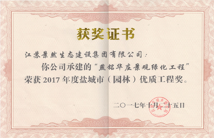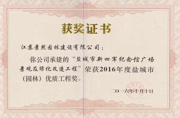 園林工程榮譽(yù)證書(shū)